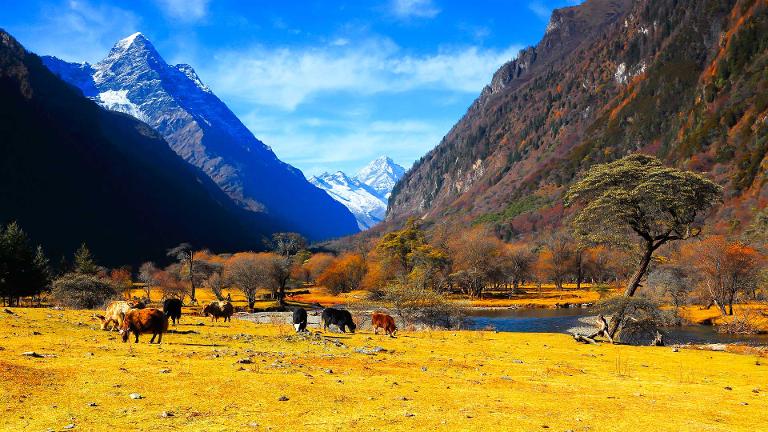 - 下午:抵达四姑娘山后,游览双桥沟,这里是四姑娘山最美丽的一条沟,可以乘坐观光车游览。